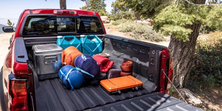 Flexible design features such as a mid-position tailgate capable of supporting 500 lbs., an available built-in 120-volt power outlet along with cargo bed lighting, and a convenient measurement tool built into the tailgate make it easy to see how Colorado offers better bed and tailgate functionality than any other competitor in its class.8